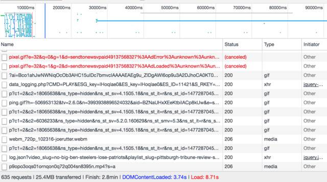 I opened a local news site's webpage and watched the requests made in the background, as the browser sat in the background.
